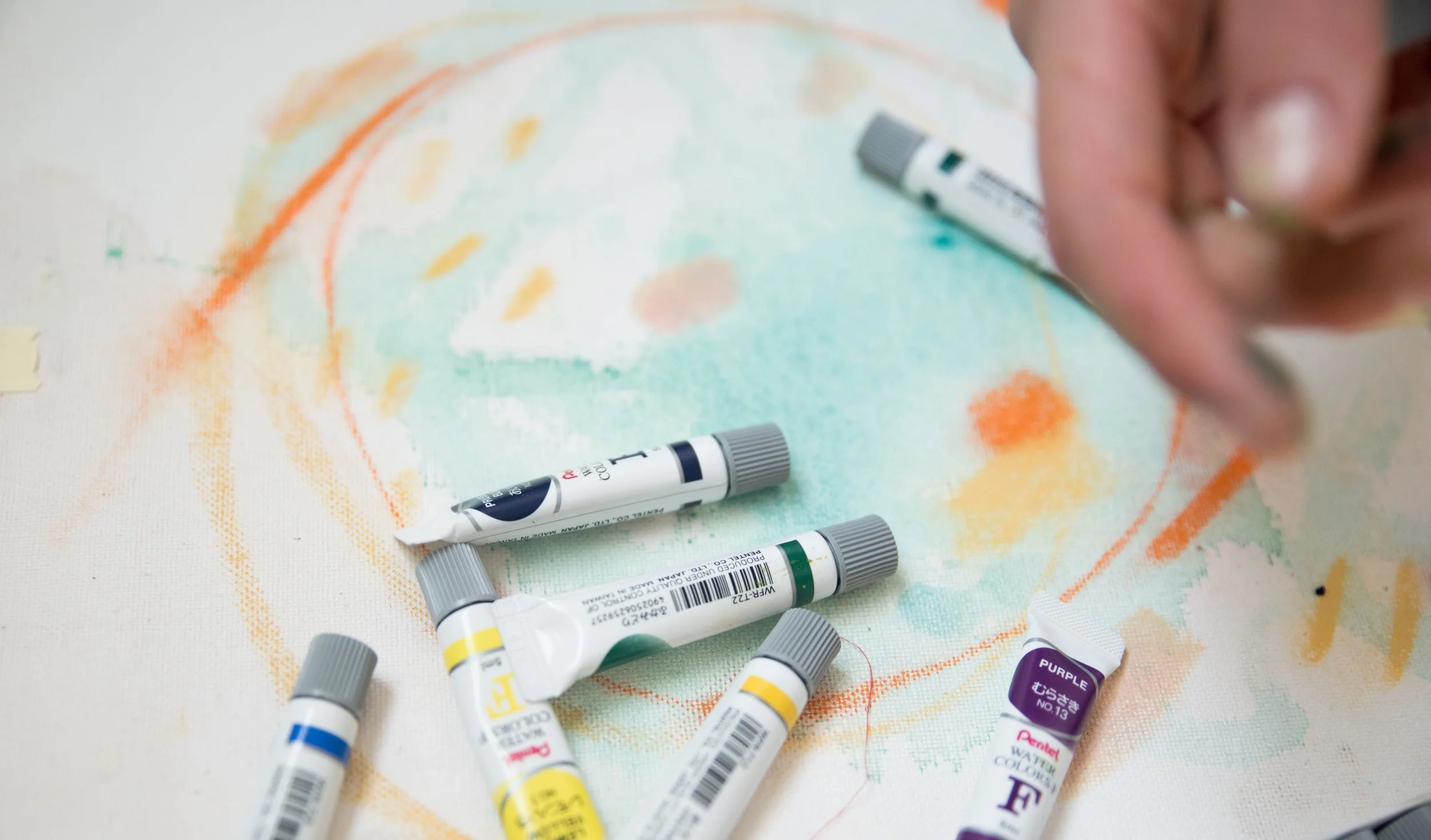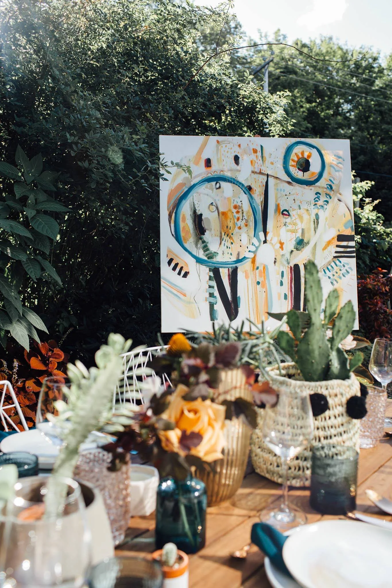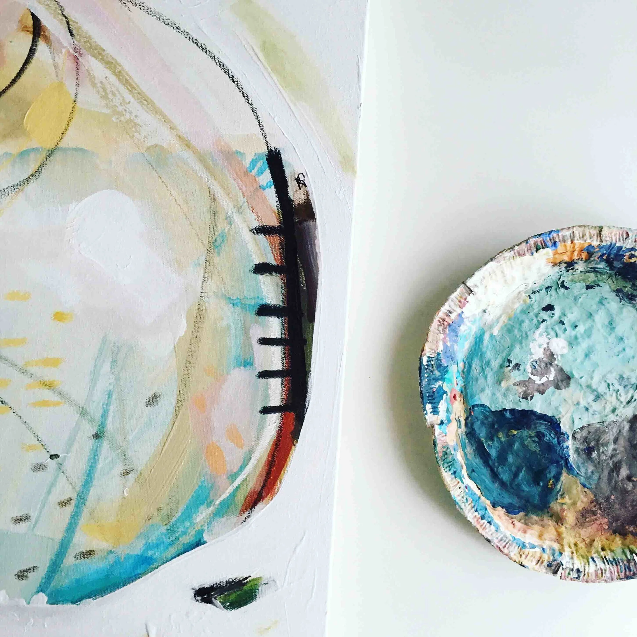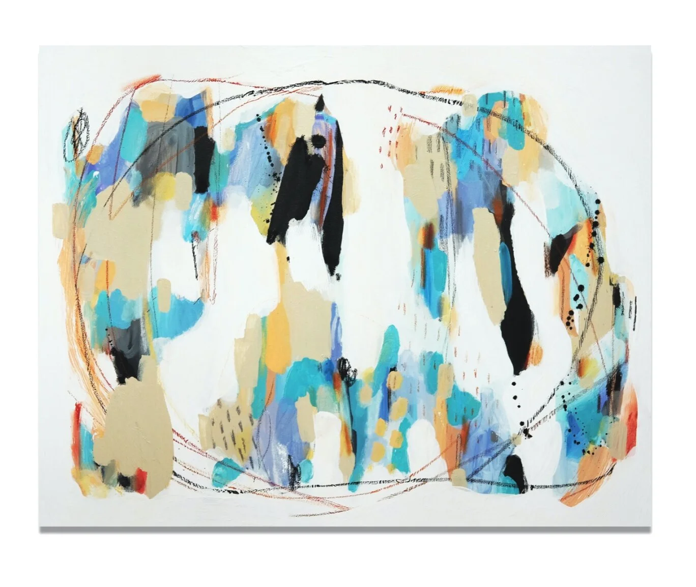 Les espaces négatifs, prenant place parmis des éclats de couleurs vives, arrivent spontanément et viennent définir les formes se retrouvant au coeur des oeuvres, celles-ci de plus en plus organiques, vivantes, éclatantes. "Rencontre" est également fortement inspirée de différents séjours de travail et d'expériences en nature, capturant ainsi dans ma pratique une variété de nouveaux paysages visuels. Grâce à ces expérimentations, j'ai grandi dans mon approche avec les textures, les matières, les formes et les teintes. C'est dans cet espace de création libérateur que j'ai pu travailler mon cheminement des "Personnes" vers la "Rencontre"; autrement dit de la connaissance du soi vers autrui.