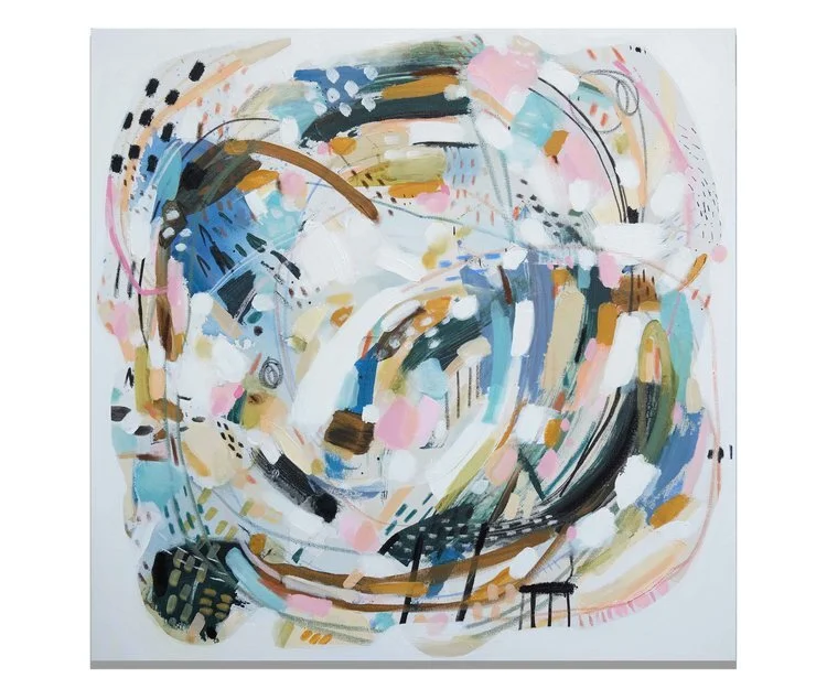 Dans ma série d'oeuvres "Construction", j'ai revisité mon travail avec l'utilisation d'outils plus brutes, tels les spatules de différentes tailles et formes. Les stries blanches sont à nouveau présentes dans les pièces, mais avec une tournure davantage en mouvance, celles-ci rassemblant autour d'elles les formes des différents aplats de couleurs, faisant émerger l'oeuvre dans une composition unique. La guidance des traits minutieux jumelés aux espaces ajoutent aux travaux un effet d'intervalle, celui-ci prenant place comme une multitude de respirations. En outre, la matière s'installe comme une oasis de calme et de paix parmi les tourbillons d'énergie.